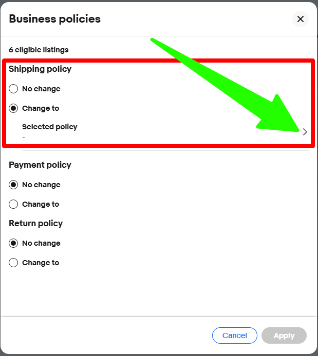 「Change to」にチェックを入れ、「Selected policy」右の「>」をクリックします。