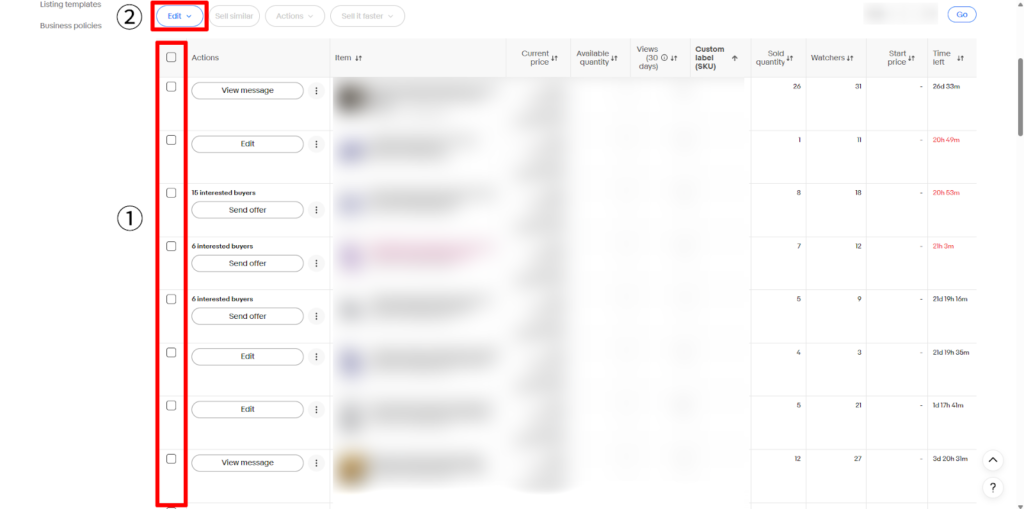 ebayの管理画面では商品を個別に編集する方法と、商品を一括で編集する方法があります。個別での編集は簡単ですが、一括は少しややこしいので、詳しく解説していきます。