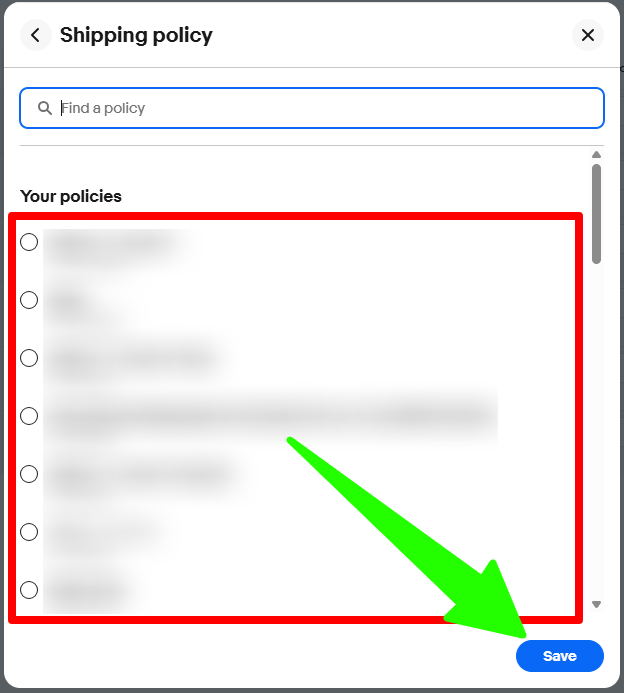 対象のシッピングポリシーを選択して、「Save」をクリックします。